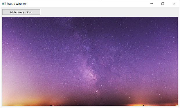 QFileDialog 로 사용자가 선택한 이미지 파일의 경로를 알아낸 뒤 QPixmap 의 생성자 함수 파라미터로 넘겨서 객체를 생성합니다. QLabel 객체에 이미지를 띄우기 위해 setPixmap() 함수를 이용해서 QPixmap 객체를 추가합니다.