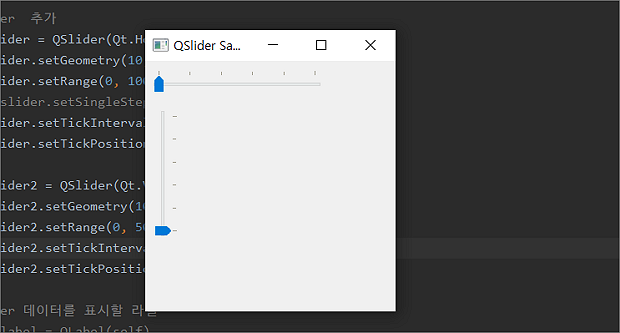 - QSlider.TicksBelow : 틱을 (수평) 슬라이더 아래쪽에 표시