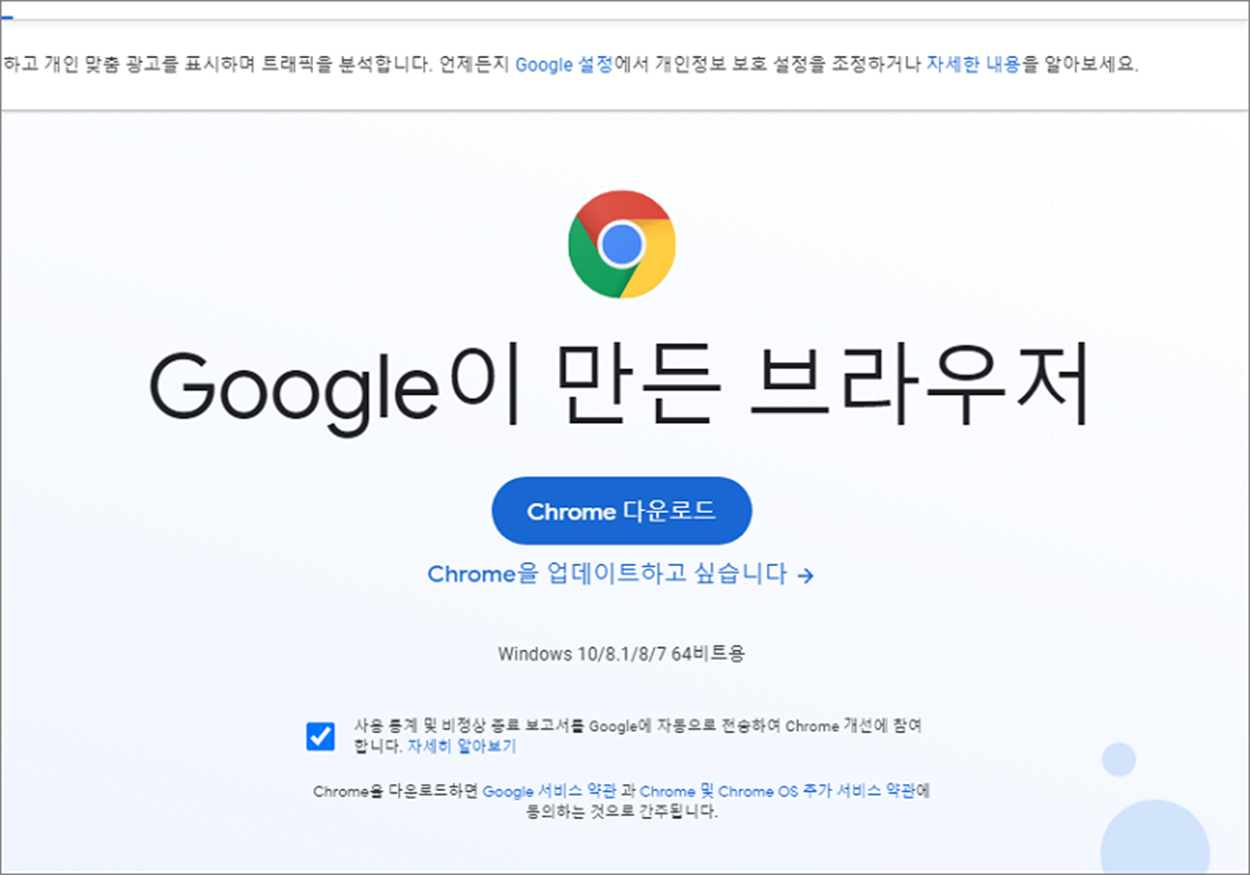 ▼ 메타마스크 설치를 위해서는 구글 크롬 버전이 필요합니다. 위에서 언급했듯이 PC 에서 사용할 수 있는 메타마스크는 크롬 확장 프로그램이기 때문입니다. 우선 크롬을 설치합니다.
