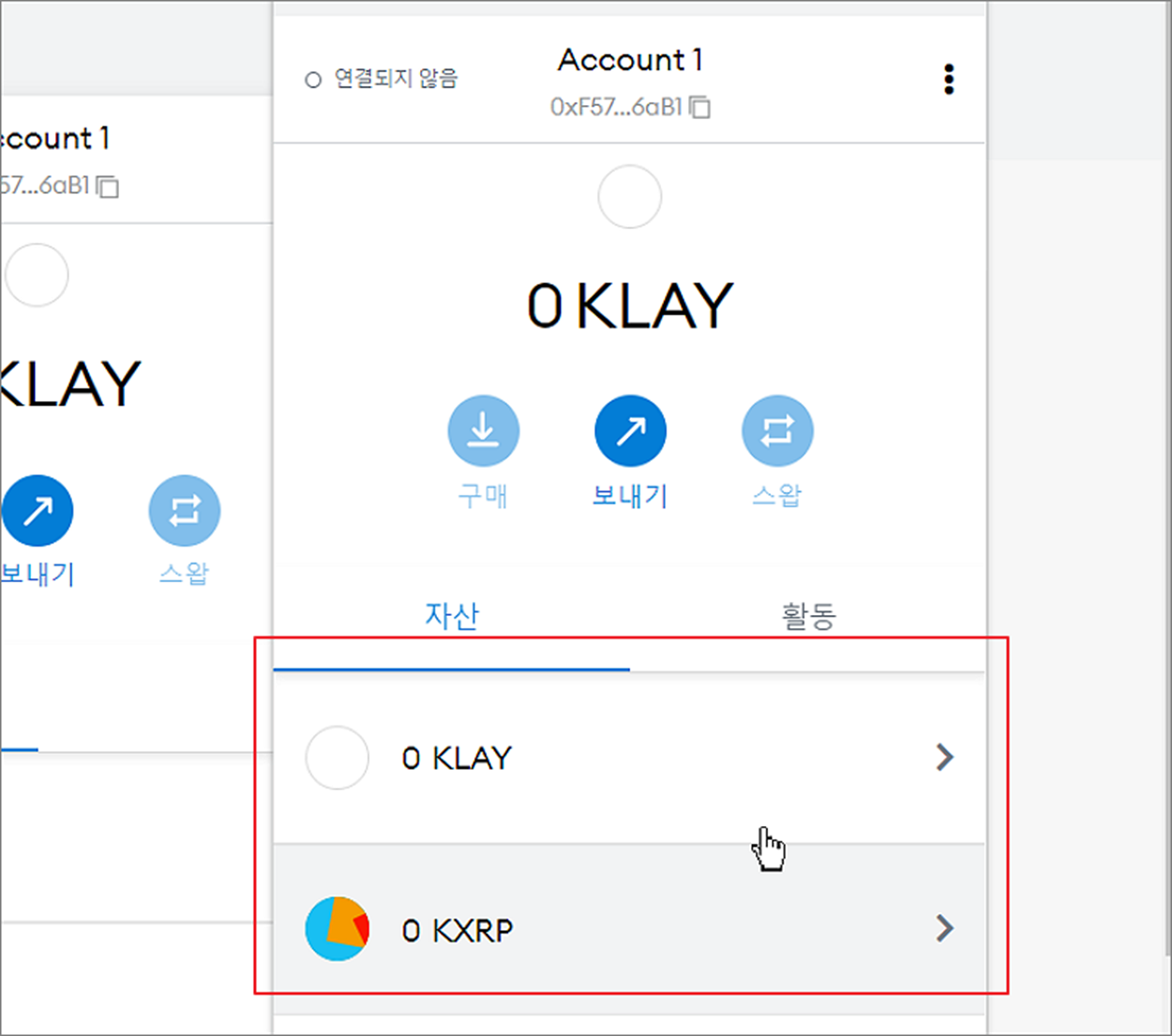 ▼ 메타마스크에 Klay 만 있었는데, KXRP 도 추가가 되었습니다. 이제 클립이나 디센트 지갑에서 메타마스크로 전송하면 코인을 확인할 수 있습니다.