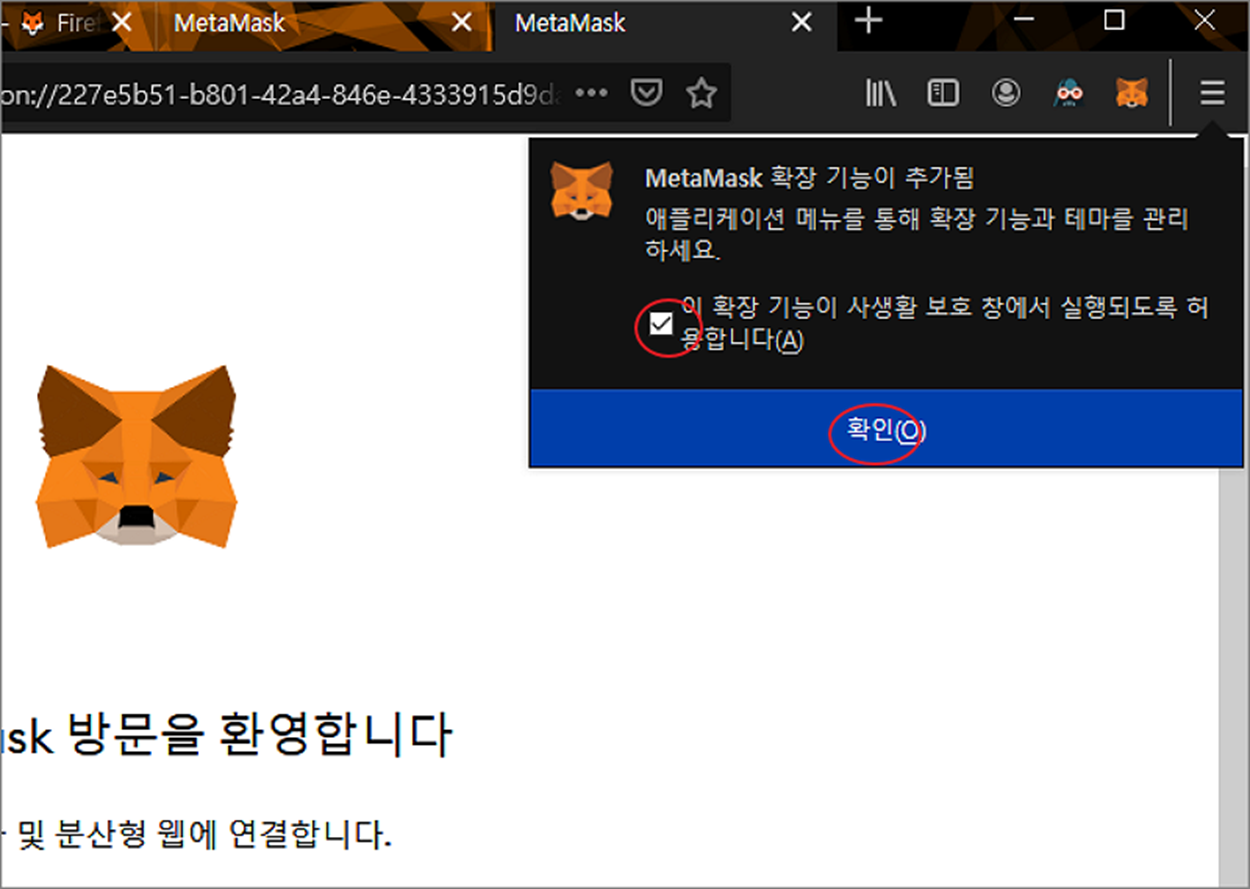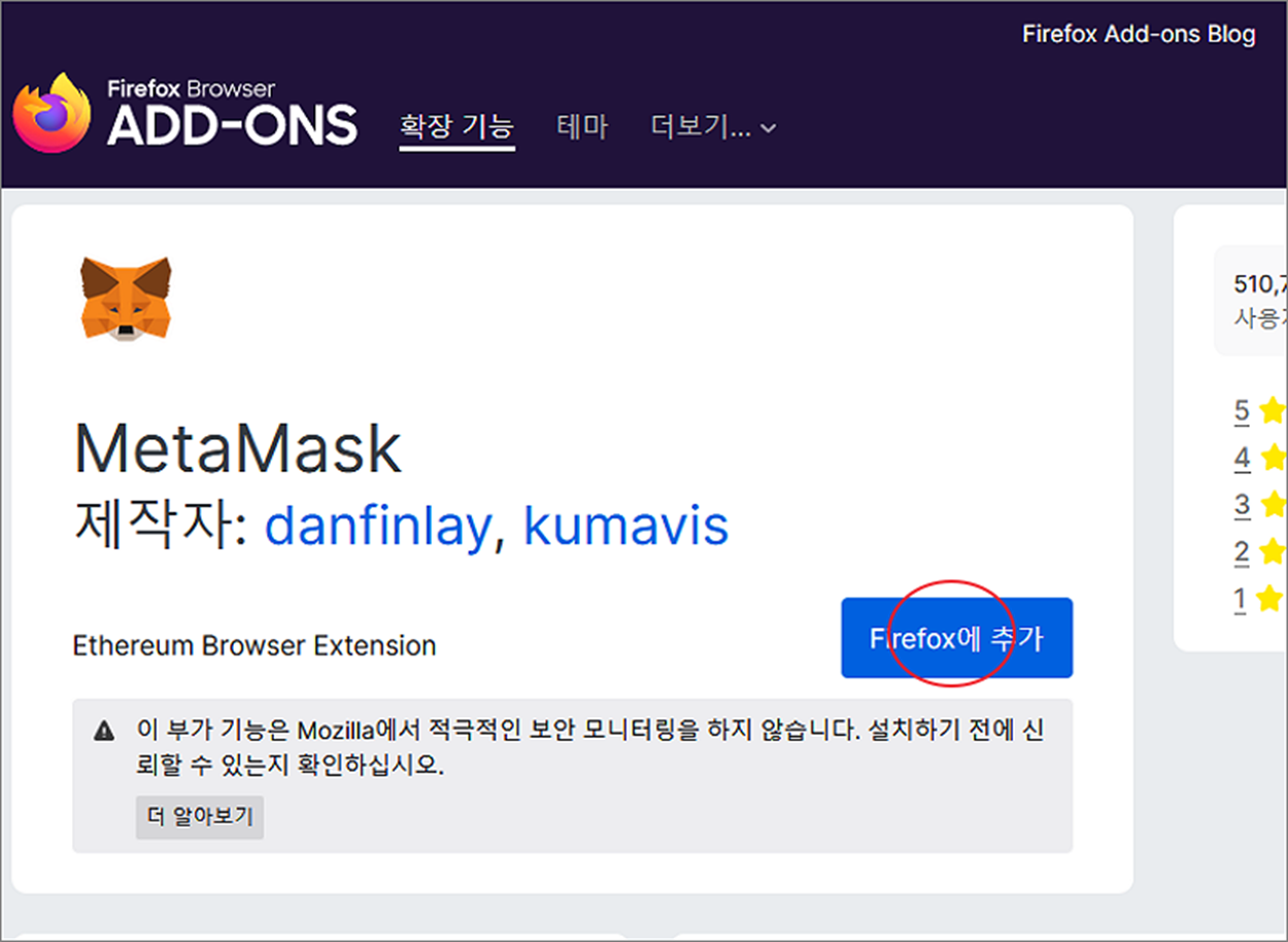 대부분 메타마스크는 크롬 브라우저에서 사용합니다. 하지만 파이어폭스나 오페라 브라우저에서도 메타마스크를 설치해서 코인을 관리할 수 있습니다. 자신이 주로 사용하는 브라우저가 파이어폭스일 경우 메타마스크 때문에 크롬으로 변경하지 마세요.