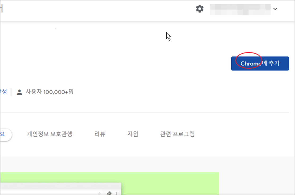 ▼ 설치 페이지로 이동해서 오른쪽 상단에 Chrome 에 추가 버튼을 클릭합니다.