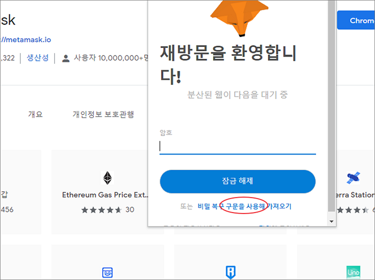 메타마스크(Metamask) 복구문구로 이전 지갑 연결하기